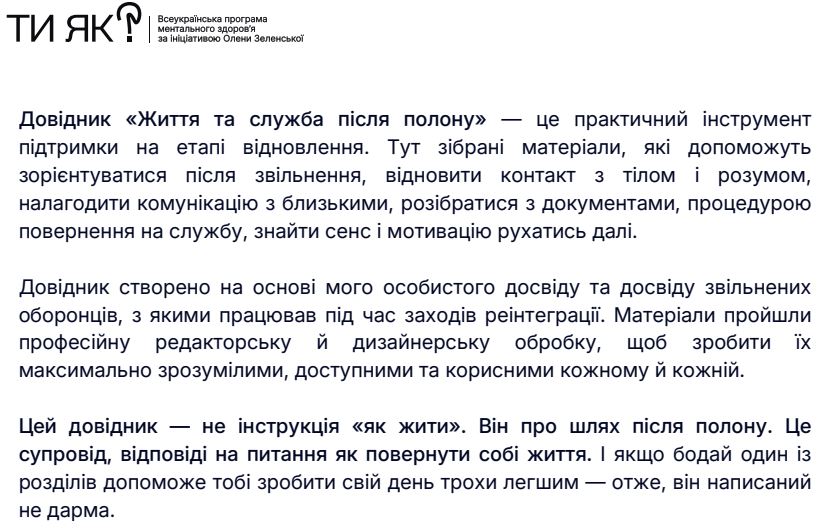 Життя та служба після полону (Довідник для звільнених з полону).